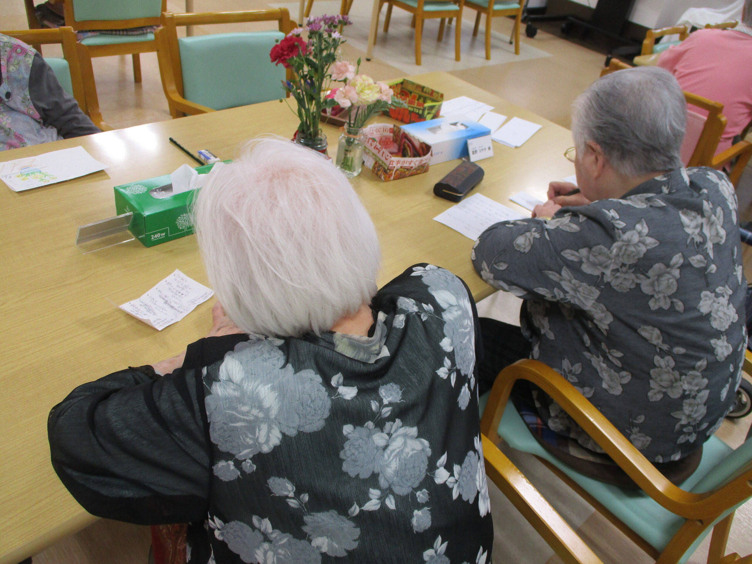 今日は川柳レクです。皆さん、一生懸命に考えて書いていますね。