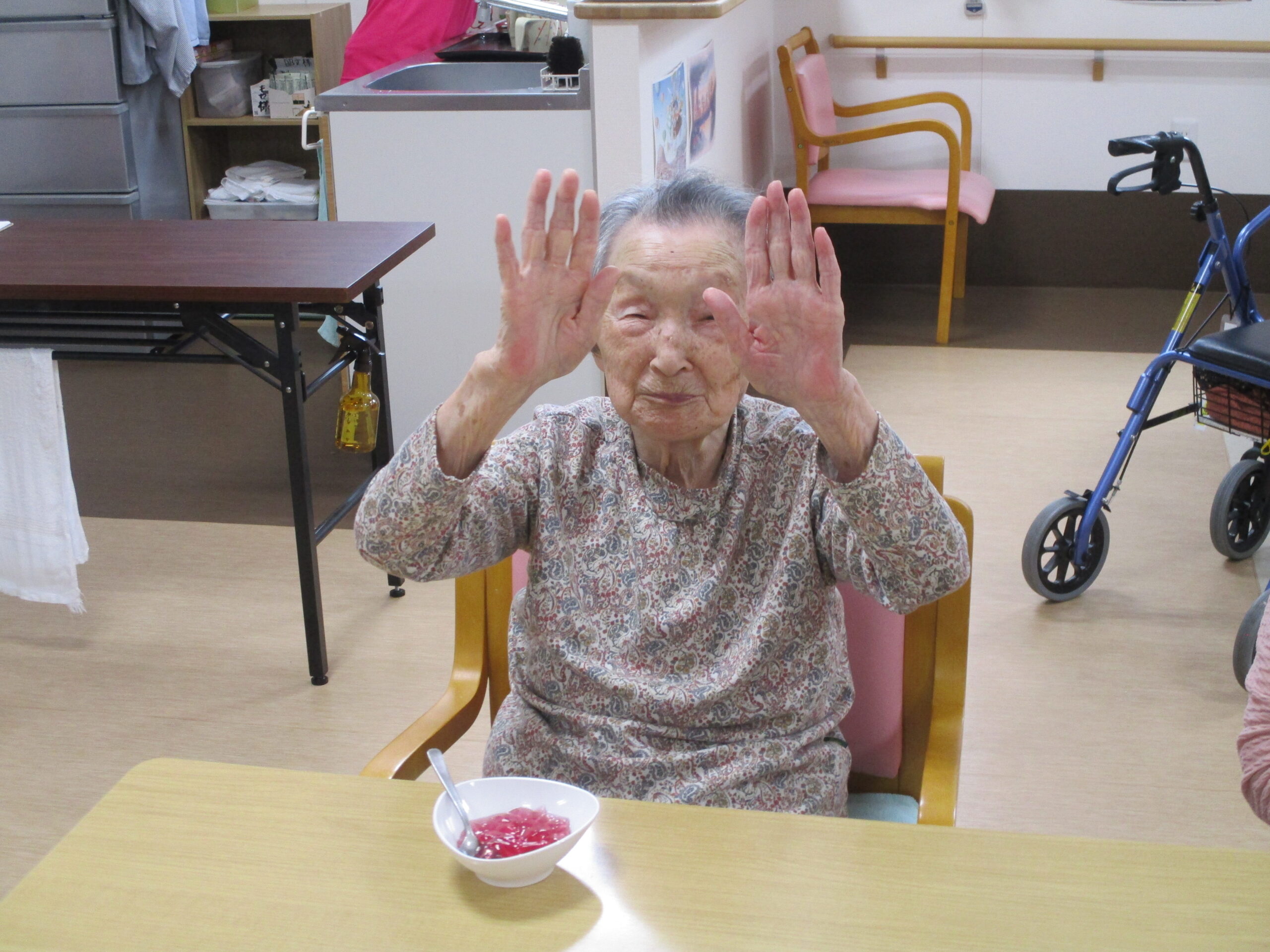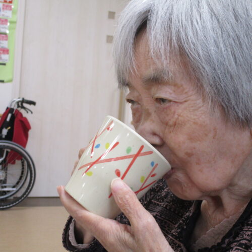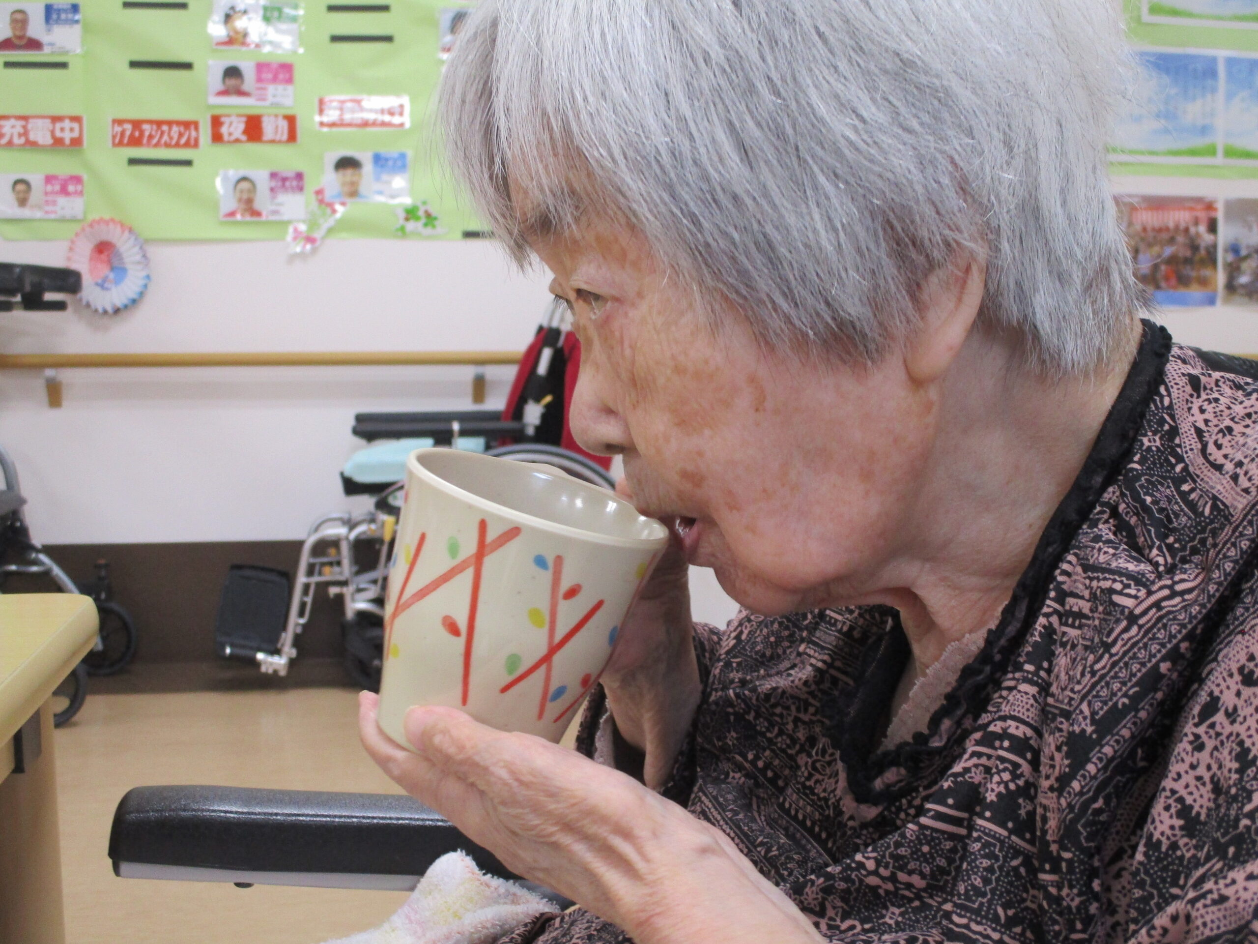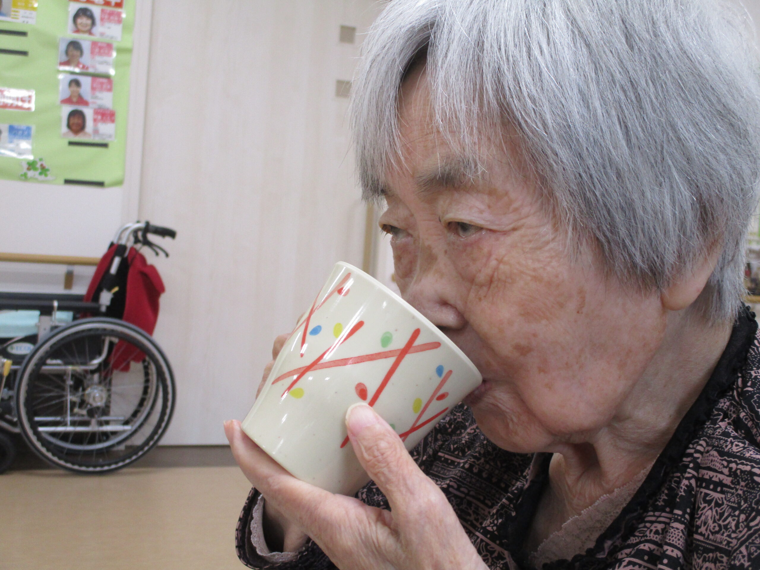 おやつを食べ終わってお茶飲んでゆったり過ごされておりました。