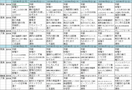さわやかこすもす館 9月前半の献立です(*^^)v 2025-09-03 2025-09-03 こんにちはさわやかこすもす館です(^^)/ 9月前半の献立です(*‘ω‘ *) 残暑が厳しいですが暑さに負けず元気に過ごしましょう(/・ω・)/ 担当:能塚☺