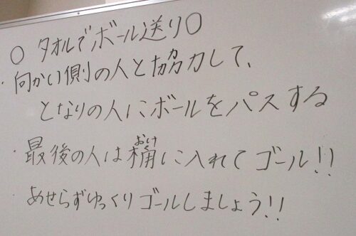 さて今日は、先日行った「タオルでボール送り」の様子をお伝えします!
