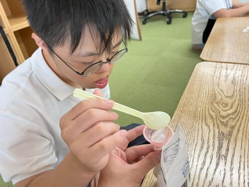 まずは小さな袋にお酢を注射器で流し込み、袋を閉めます✨