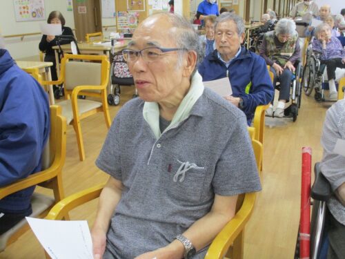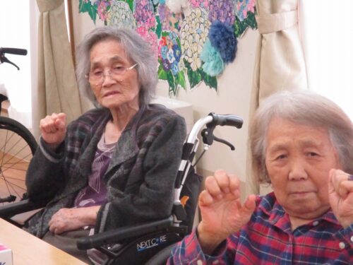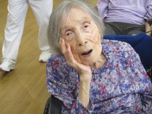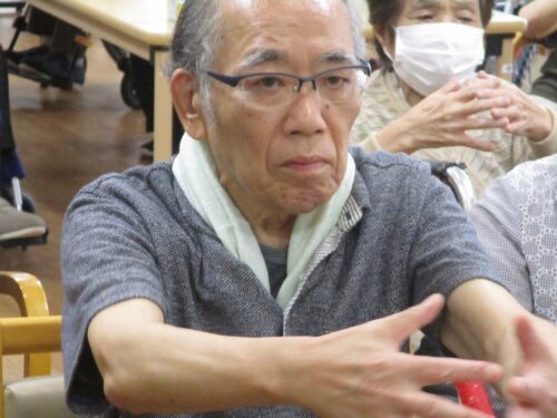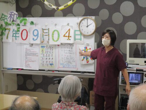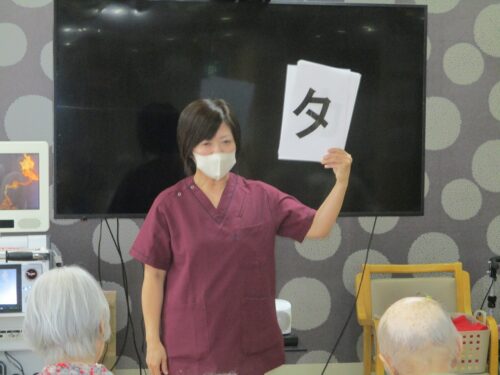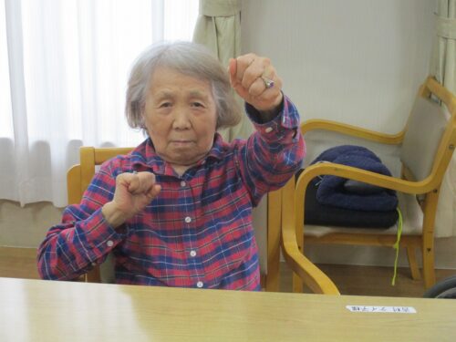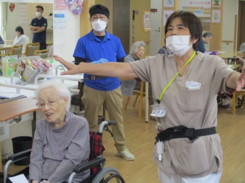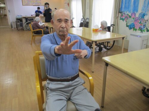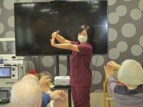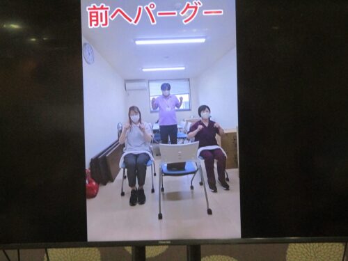 リハビリの先生と集団体操始まります。今日は何日ですか