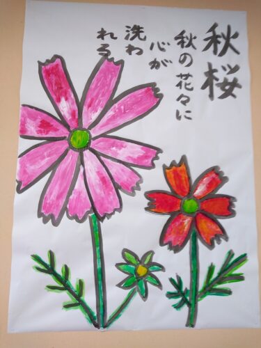 5階は柿と、コスモスの絵を作製しました(*^-^*)