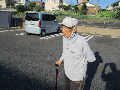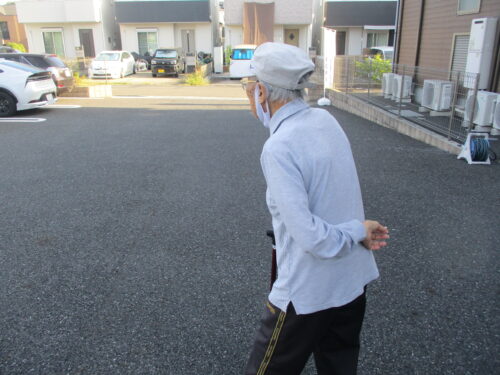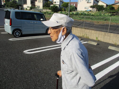 朝🌄歩行訓練の一環として駐車場を歩いてます👣👣👣