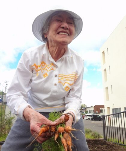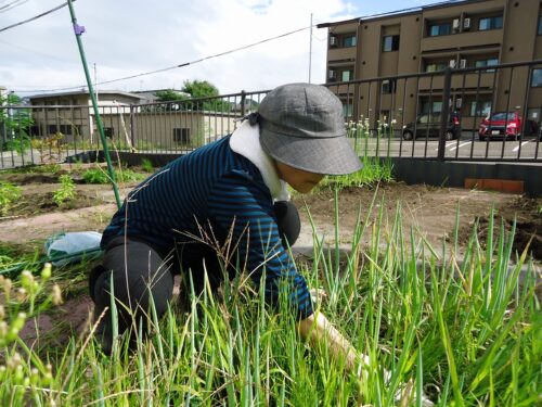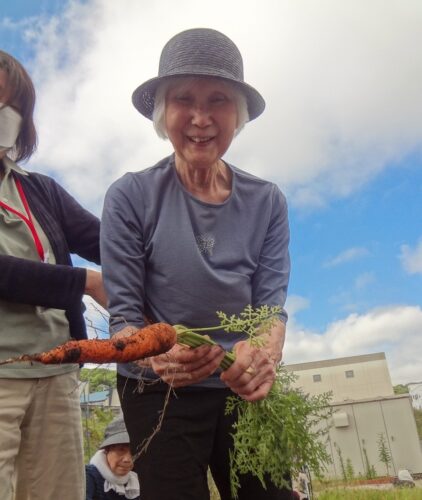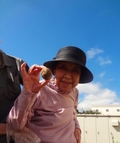あるよく晴れた日に、入居者様と畑の野菜の収穫をしました~🥔🥕