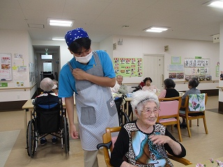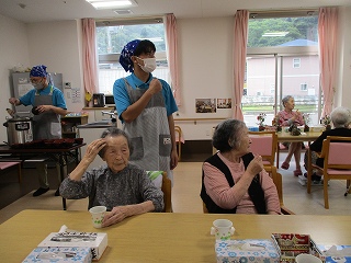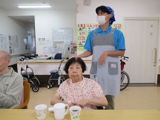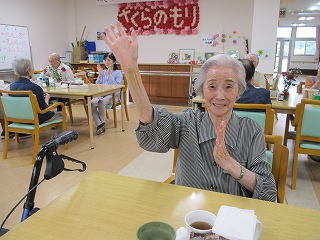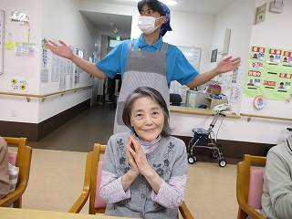 お食事前に体を動かします。もちろん口腔体操も行いますよ👍