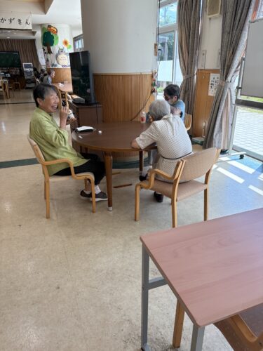 朝一番にババ抜きゲームを楽しんだ後は和気あいあいと自動販売機で
