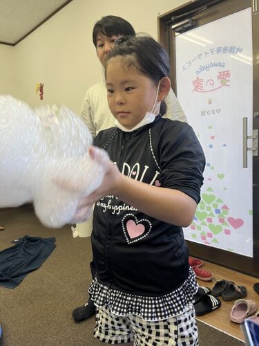 そこでこの日はやまが館内で最初にあわ遊びをしました.。o○