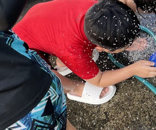 洗剤のベトベトを水で流しながら楽しく遊ぶことができました!