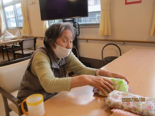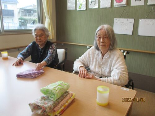 今日は、お手伝いでエプロンを畳んで下さっていた
