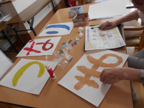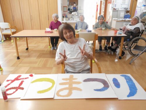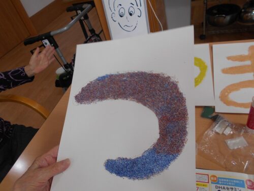 さわやかグループホーム なすしおばら 未分類 つつじユニットの様子 2025-09-09 2025-09-08 『夏祭り』の飾り作成の続きです。 ひたすら、糊を付けてカラーの砂を少しずつ付けて・・・ 根気のいる作業です。 完成! (ちょっとピンボケすみません💧) おひとりで頑張って下さいました。 ありがとうございます(*^_^*)