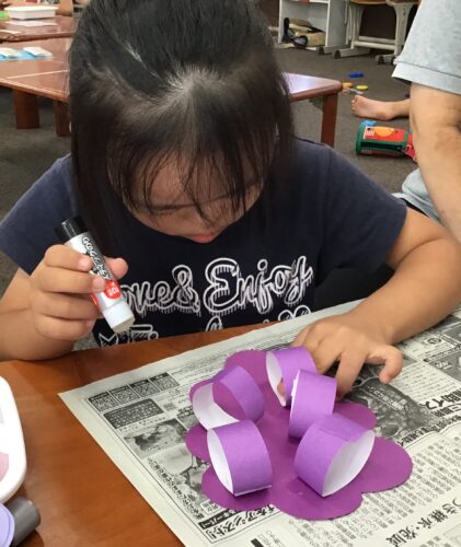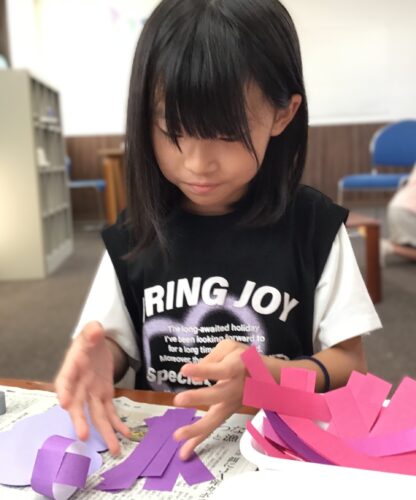 「ここに~糊をつけてっと~」美味しそうなぶどう🍇ができていっていました
