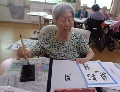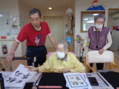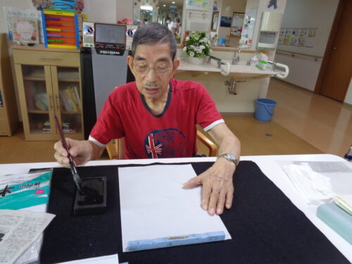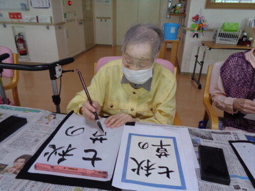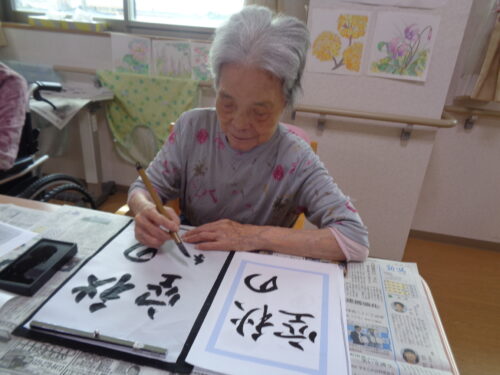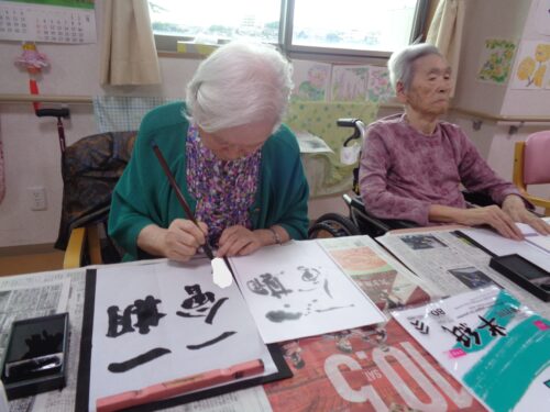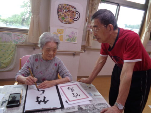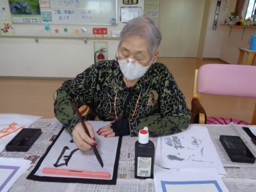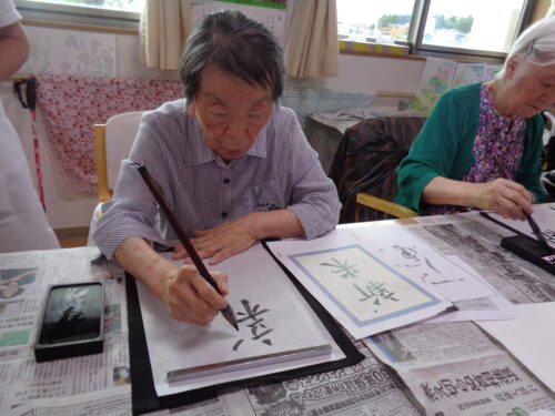 「もっと筆をたてると書きやすいよ✨」先生の巡回指導も受けながら🥰