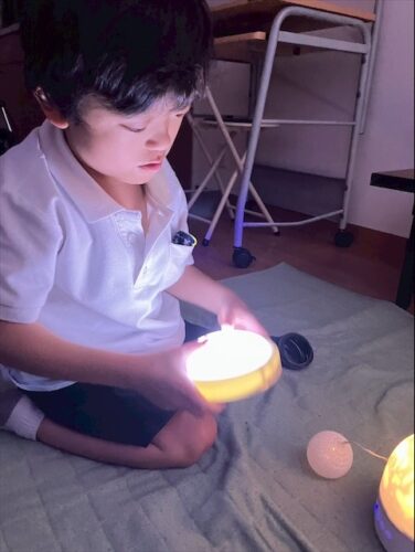 スヌーズレンは心身の緊張をほぐしリラックスや探索を楽しむ活動とされているため、児童たちが能動的に刺激を選択し、自分自身のペースで楽しみ主体的な体験を積む事ができます!