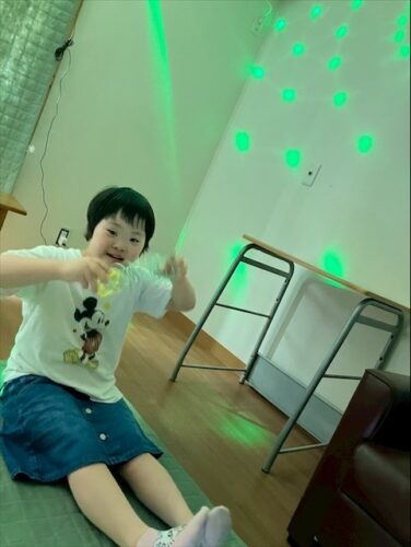 また、スヌーズレンは感じた刺激を共有し、共に喜びを感じることを重視されている為、児童と職員間で共感的な関わりを持つこともできます!