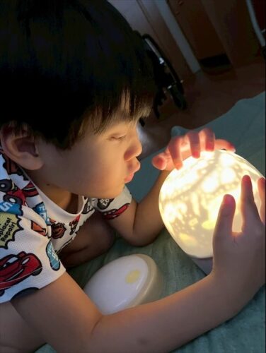 静かに光を眺める時もあれば、かかっている音楽や光の動きに合わせて体を動かすこともあります☺️