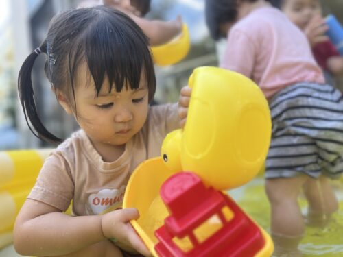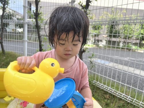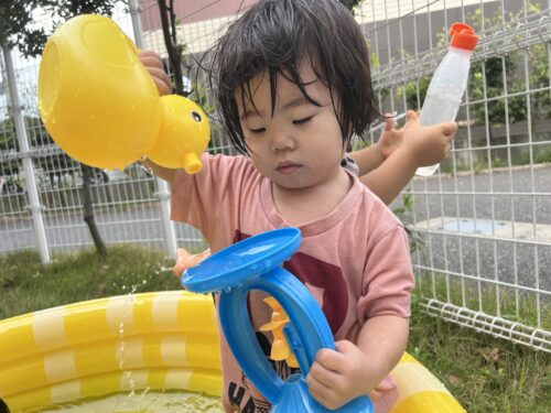 アヒルのジョウロを持ってこちらも真剣なTちゃん🩷