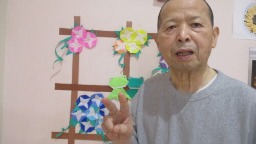 さわやかひめじ館 アサガオ🌼 2024-07-29 2024-07-29 あさがおの壁面飾りが完成しました(*´▽`*) カエルとアサガオのお花がキュートな作品になりました✨ この他にも夏らしい作品を制作中です(^▽^)/ 完成が楽しみです(^^♪ 本日のブログ担当 森でした🐶