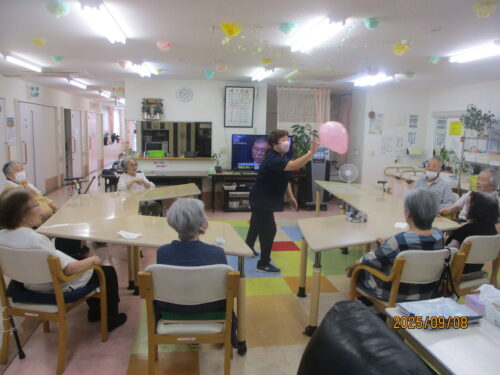 毎度ご利用者様も職員もいつも以上に体を動かせている風船バレー