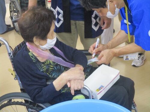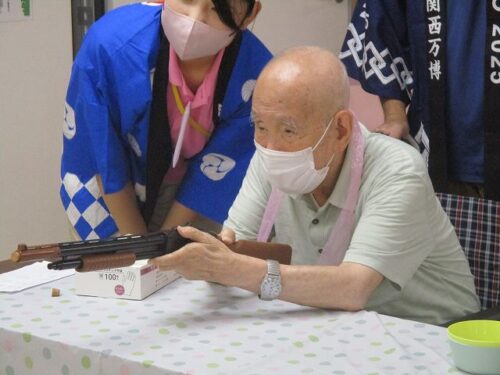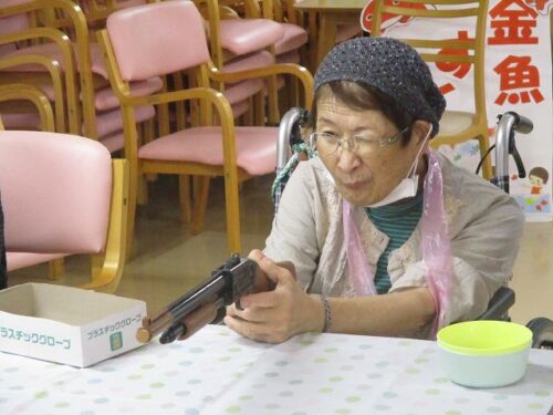 射的、金魚すくい、たこ焼きビンゴ、千本引き、唐揚げ、たこ焼き、胡瓜の一本漬け、ジュース、水ようかん、全種類楽しまれる方が多かったです。