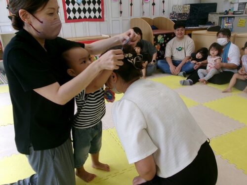 おうちの人、保育者にメダルをかけてあげるお友だち、とってもかわいかったです❤❤❤