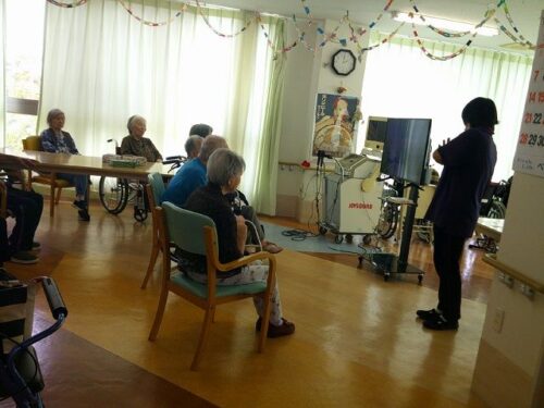 周りで聞いておられる入居者様も手拍子したり、一緒に歌ったりと大盛り上がり。