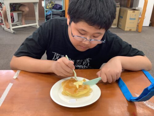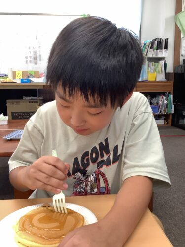 9月12日(金)は、おやつレクで「パンケーキ」を作りました。