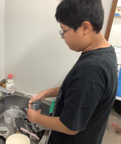 食べた後は、数人のお友達と食器洗いと食器拭きに挑戦してみました!!