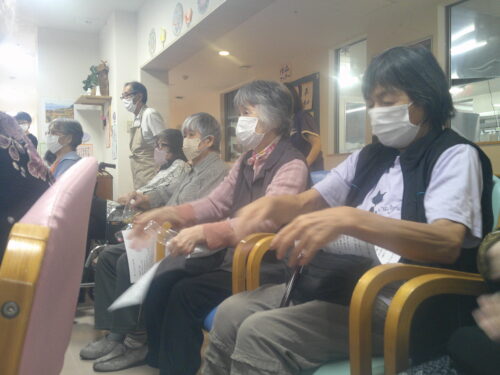 さわやかゆう輝の里 敬老の日 (ボランティア ピーナツクラブさん木琴演奏) 2025-09-15 2025-09-15 素敵な歌と演奏でした🥰 Digital Camera 沢山参加されました。 Digital Camera 手作りマスカラでリズムに乗って