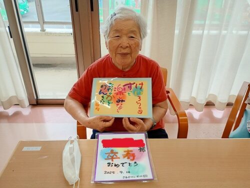 さわやかいずみ館 敬老会② さわやかいずみ館 2025-09-17 2025-09-17 こんにちは😊 昨日に引き続き 敬老会の様子を お届けします😆 メッセージカードに 皆さま 喜んでいただきました🥰