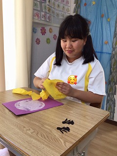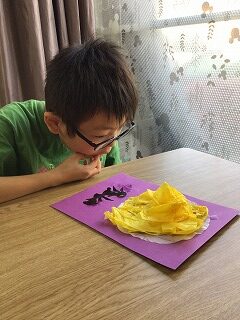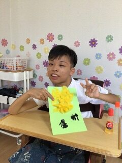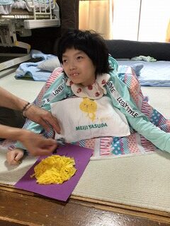 フラワーペーパーの感触を楽しみながら行ないました!🤥