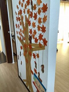 紅葉の葉っぱを貼りくるめ館を秋に染めました🍂
