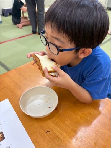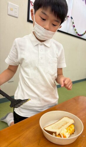 もう一枚のパンではさみ、完成。とろとろの黄身がおいしそうです😋