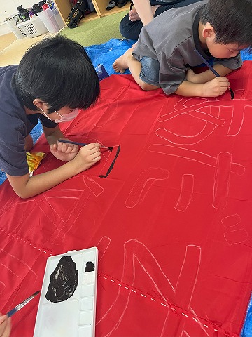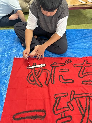 運動会に向けてみんなで横断幕を作りました😆