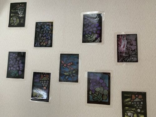 活動で、秋をテーマにパステルアートをしました。気持ちだけでも秋を先取りです。