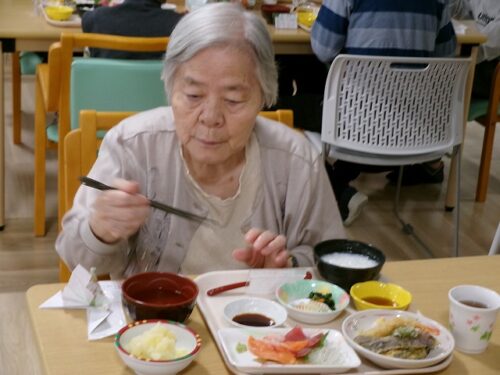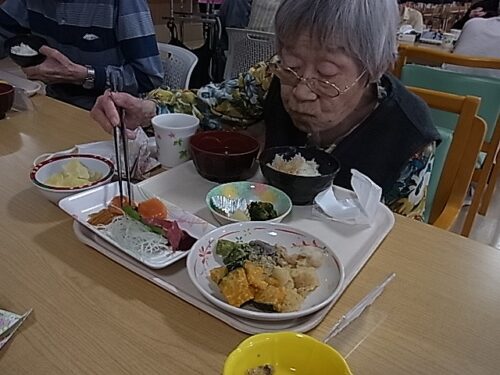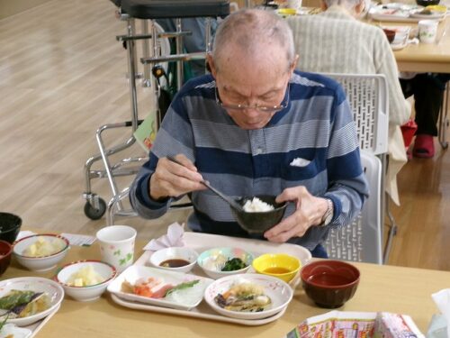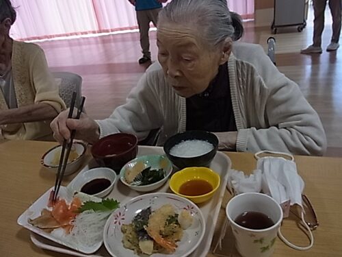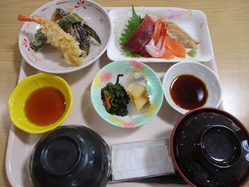 献立はご飯・清し汁・天ぷら盛り合わせ