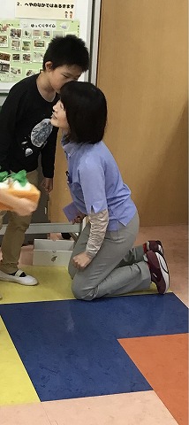 ルールを聞いたらまずは職員さんがお手本をしてみます😊
