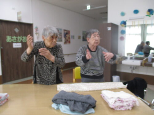 今日も暑いけど元気よく体操(*^^*)して頑張ってます