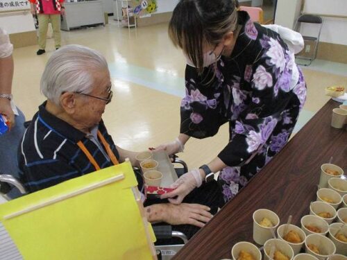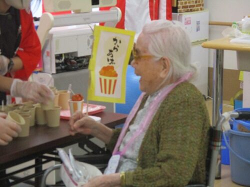 唐揚げやたこ焼き、胡瓜の一本漬け等、入居者様はとても喜んでみえました。