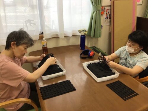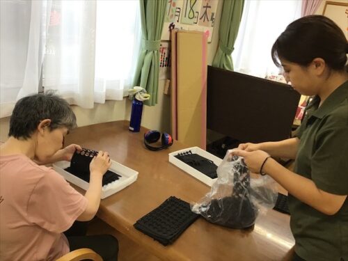 私たちは、トレーにシートを入れて、1つ1つ丁寧にパッキンを