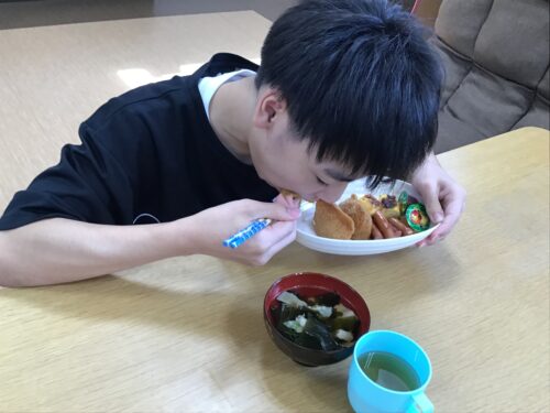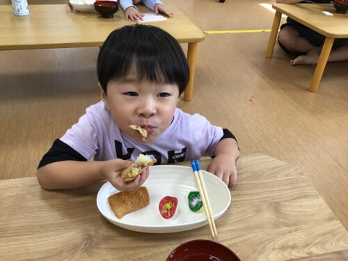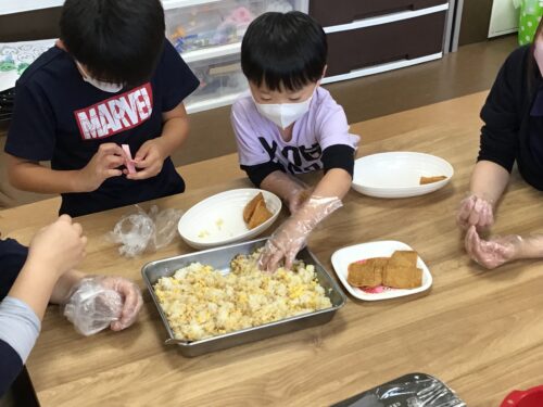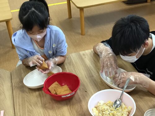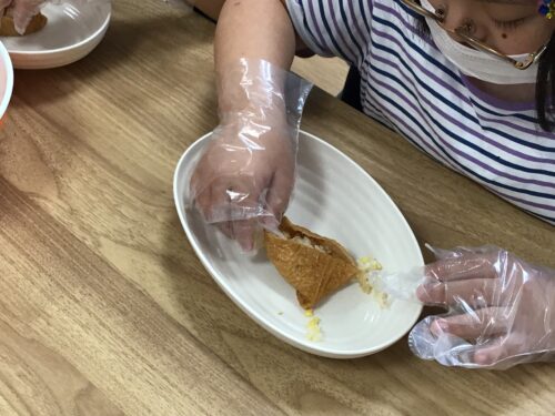 今日は 調理レクでおいなりさんを作り、