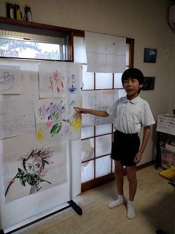 時間は短かったものの、思いおもいの絵を描いて最後、みんなの前で発表しました。