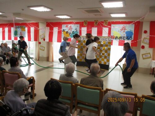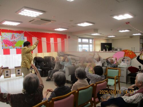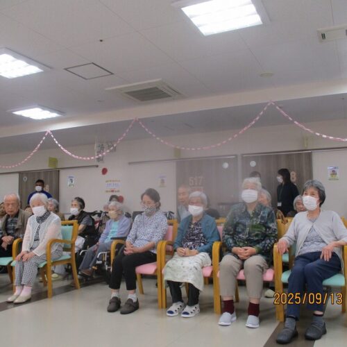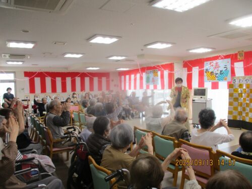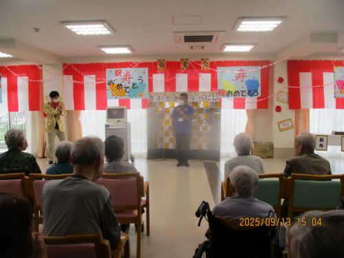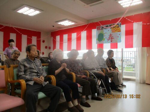 昼食後、5階にほとんどの方が集まって敬老会が開催されました。
