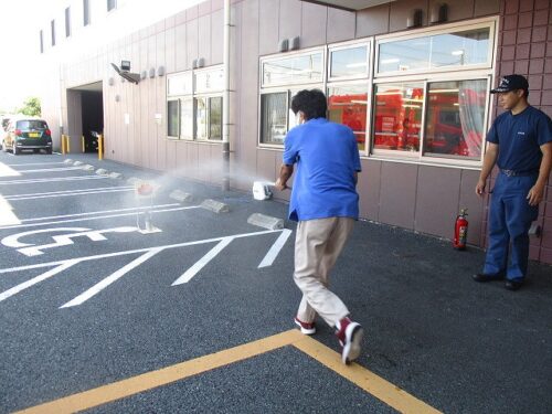 訓練後には、消火器の使い方を教えていただき