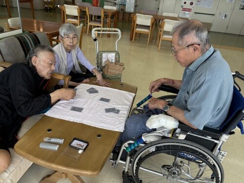 5階フロアの皆様が、昼食後にホールでトランプをされていました。