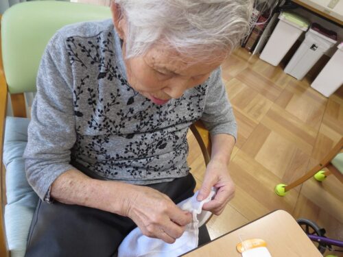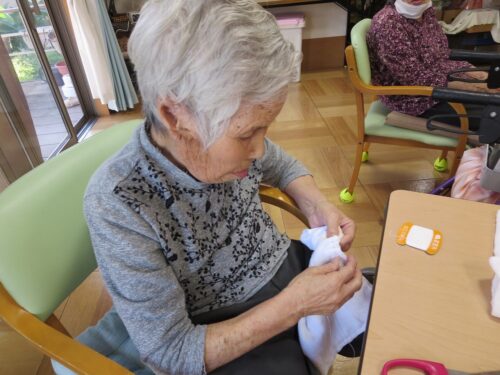 さわやかグループホーム なすしおばら すいせんユニットの様子 2025-09-22 2025-09-21 雑巾を縫ってくださってます。 チクチクチクチク・・・上手ですね~(*^_^*) 先日は他のご利用者様のパジャマがほつれたので縫って頂きました。 縫い物はいつもすっかり甘えてしまって感謝しております。