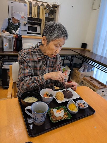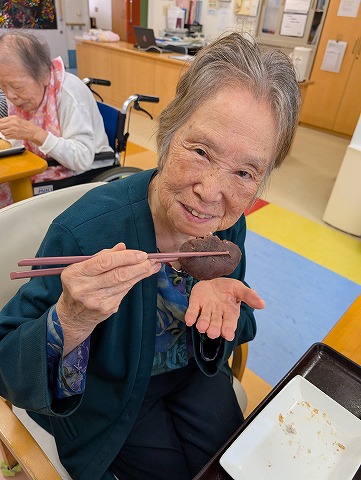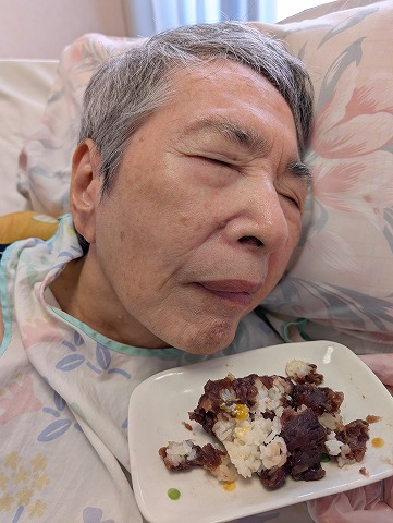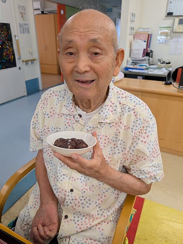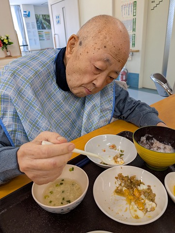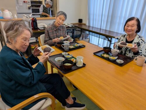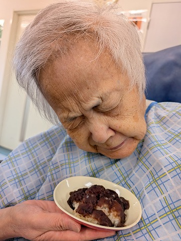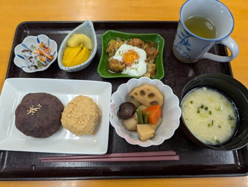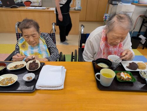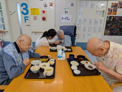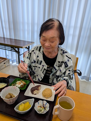 通常のお食事の入居者様。おはぎは「あんこ」と「きな粉」の2種類ですが・・・