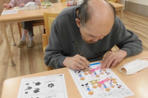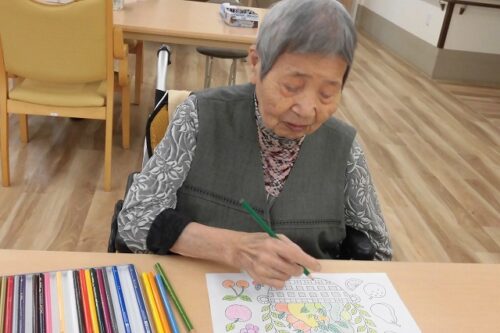フロアーでは塗り絵や間違い探しに取り組まれています
