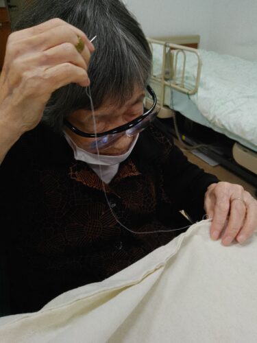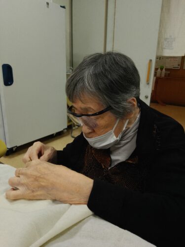 それではタペストリーとなる布を縫い合わせていただきましょう😙