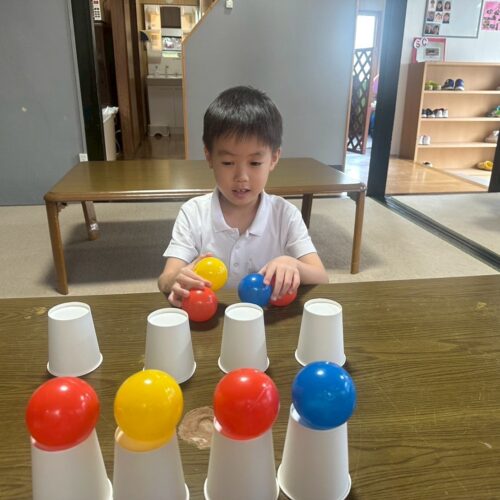 『次はコップとボールの数を増やしてみるよ!』